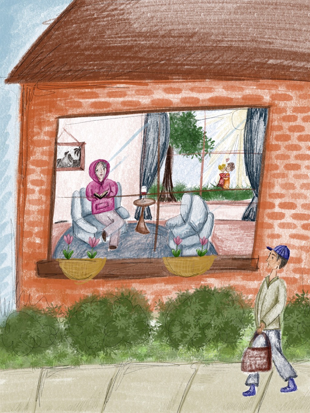 Quand je repense à ma vie d’adulte, rares sont les moments où je me suis senti complètement confortable. Il y a des factures à payer, des projets à mener à bien et on doit se lever chaque matin pour gagner notre croûte. Il n’y a pas de répit réel dans la vie adulte, à part pour certains chanceux héritiers. Donc, il n’y a pas lieu de croire que la lectrice au bord de sa fenêtre avec son verre de vin se sentait plus confortable que moi ce soir-là, malgré le fait qu’elle en avait l’air. Mais pourquoi en avait-elle l’air? Pourquoi ai-je prêté à cette femme un sentiment qui m’est étranger lorsque je me retrouve dans la même situation qu’elle?